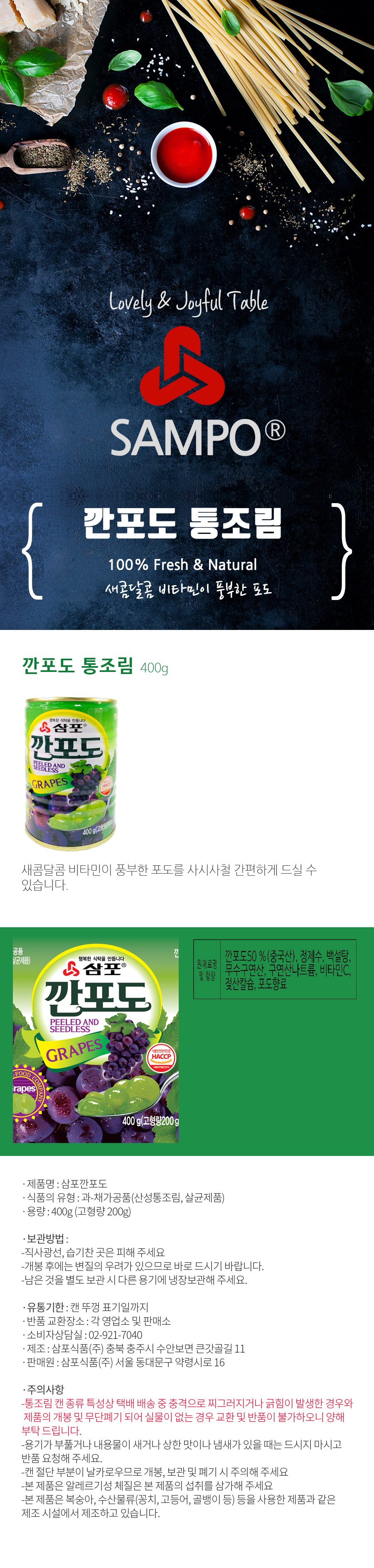 삼포 깐포도 통조림 400g x 24개