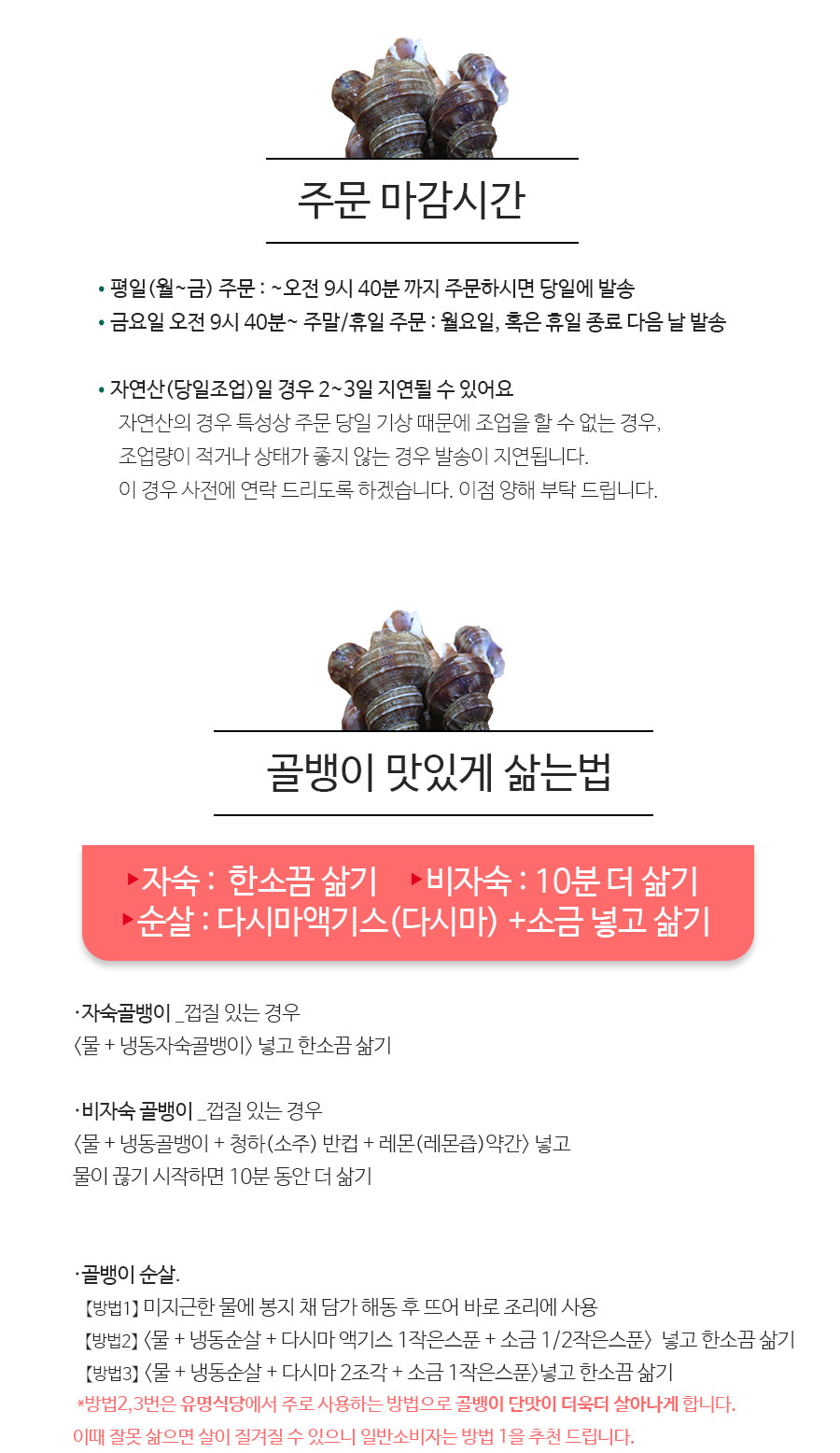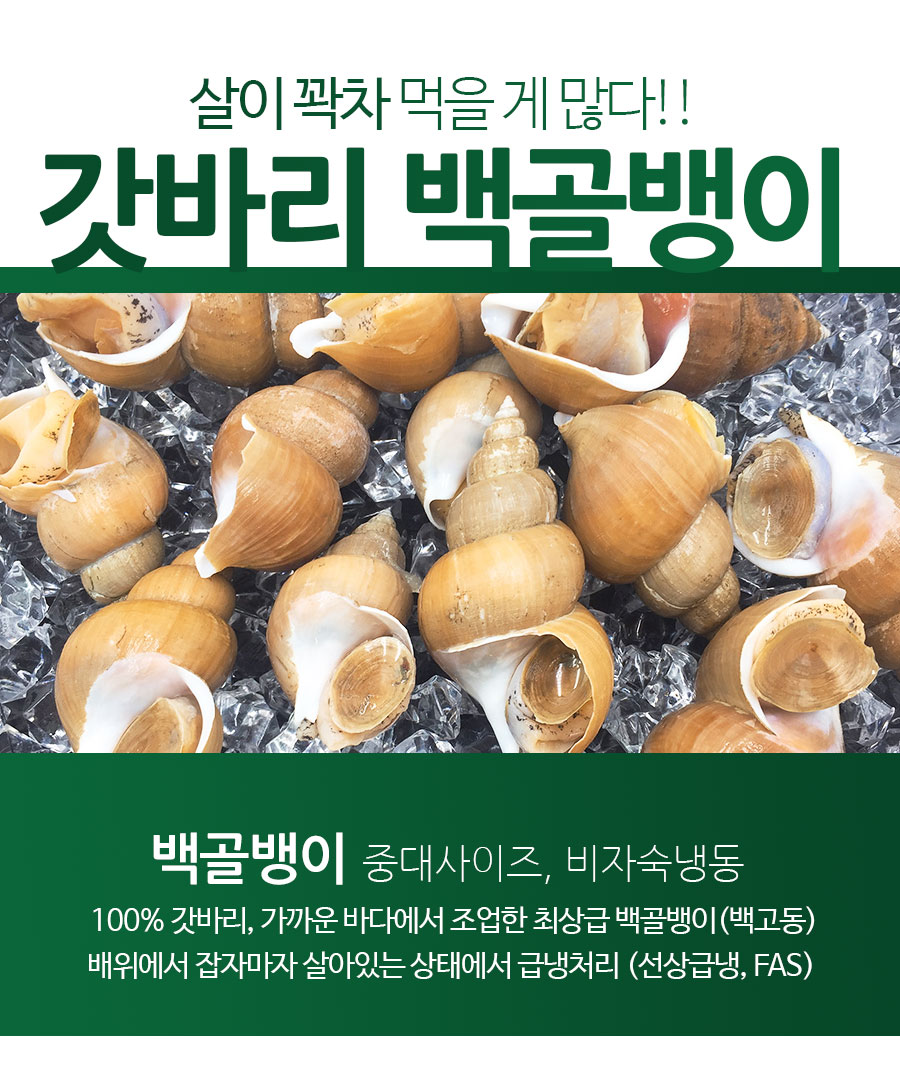 울산 갓바리 백골뱅이 순살, 백고동 순살, 대사이즈 180g x 3팩, 최고의 식감과 맛 보장
