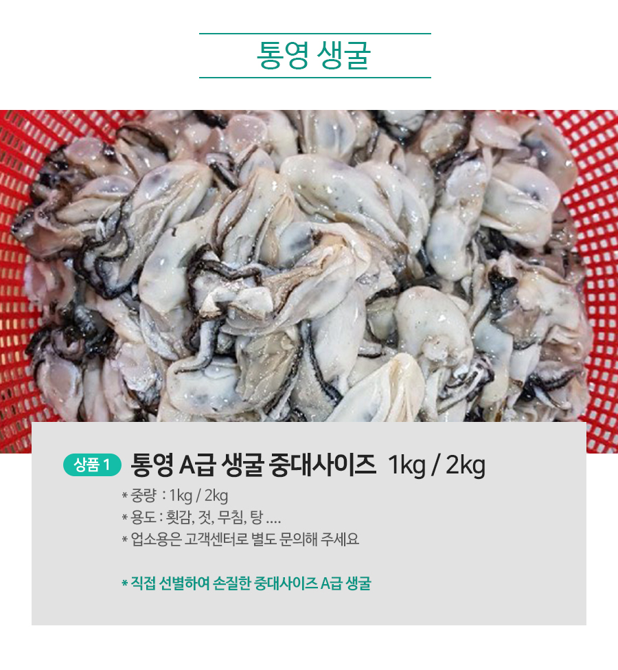 특히, 엄격하게 선별한 A등급 중대사이즈 굴만을 취급!