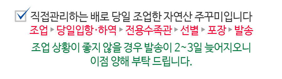 - 주문 시 '배송 시 요청사항'란에 배송일을 지정하는 경우 요청사항이 반영되지 않습니다.