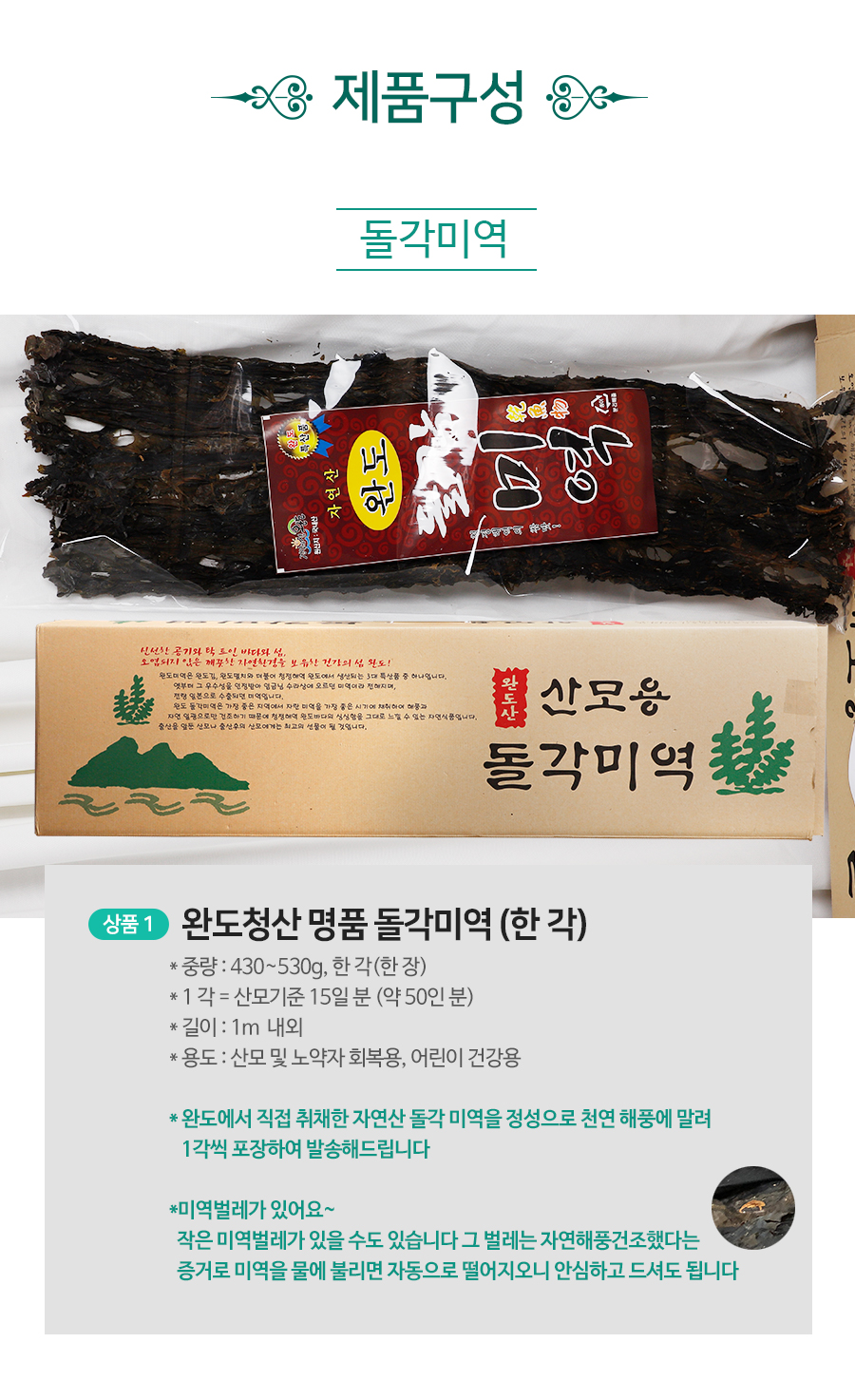 | 포장단위별 용량(중량) | 완도청산 산모미역 1장 |