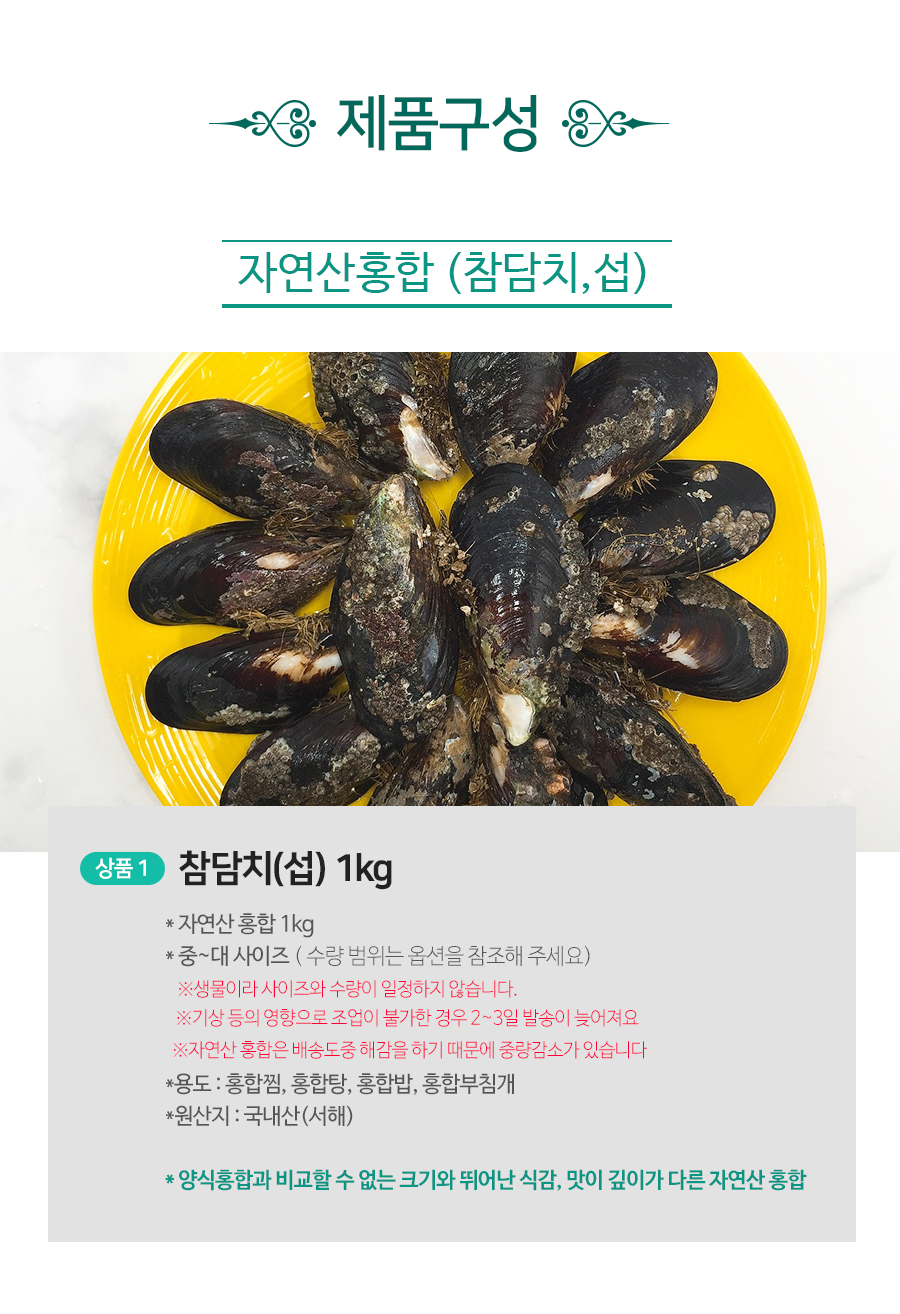 | 상품구성 | 담치 1kg |