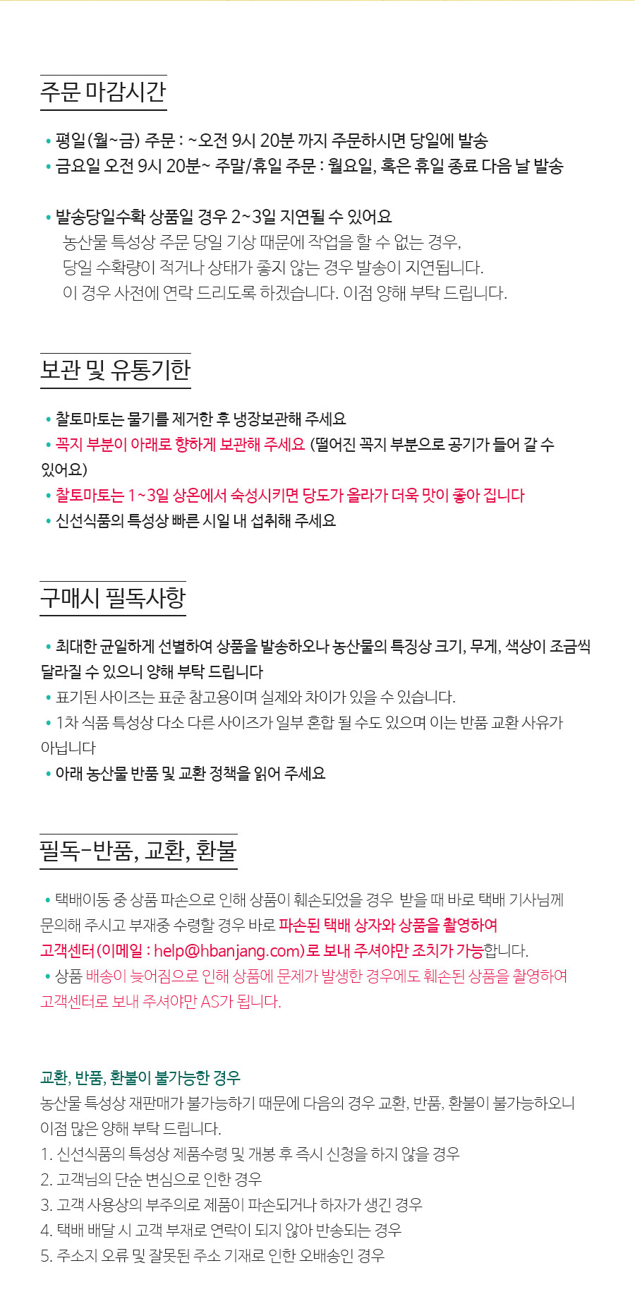 1. 신선식품의 특성상 제품수령 후 10시간 이내 신청을 하지 않을 경우
