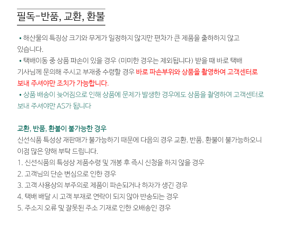1. 신선식품의 특성상 제품수령 후 10시간 이내 신청을 하지 않을 경우