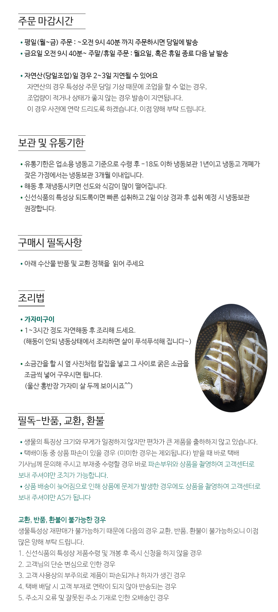 | 상품구성 | 가자미 중소 90-119g 5미 가자미 중 120-149g 4미 가자미 대 150-179g 3미 가자미 특대 180-210g 2미 |