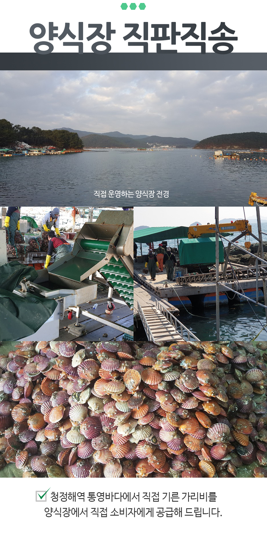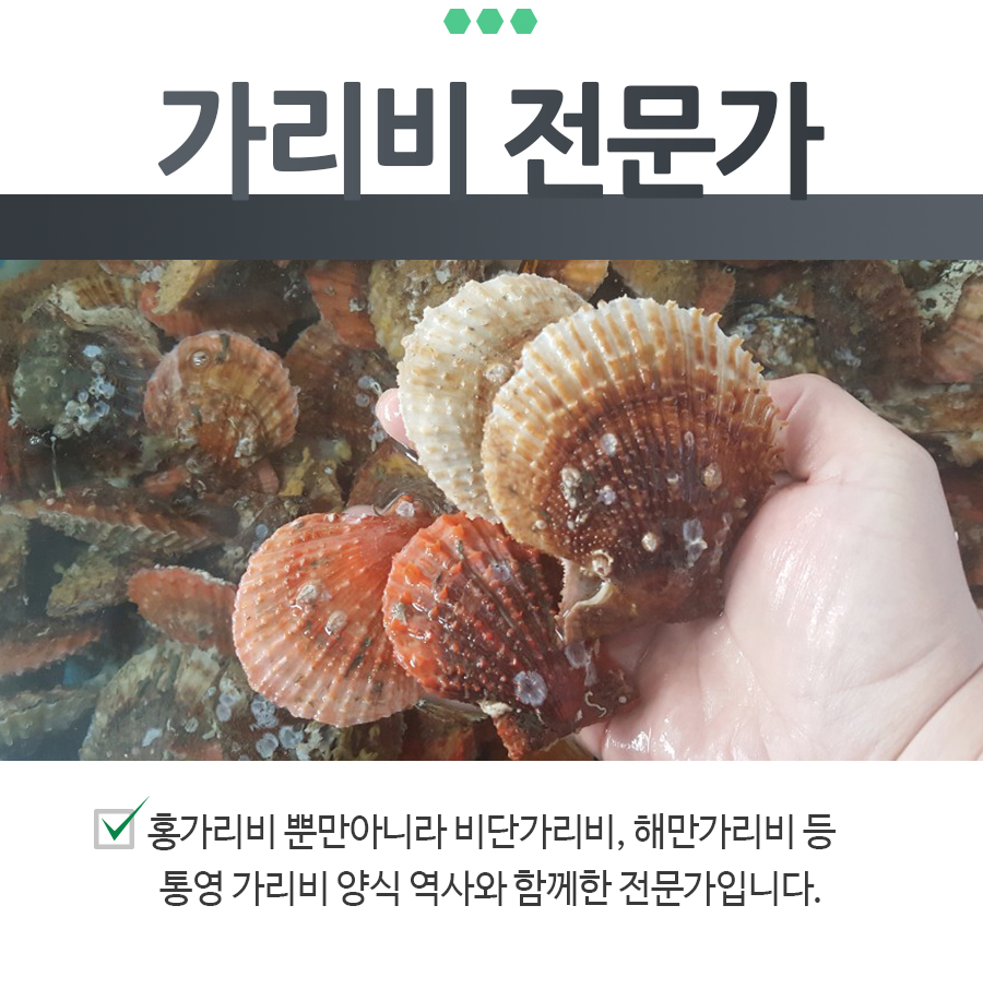 | 포장단위별 용량(중량) | 홍가리비 2kg 50미 내외 비단가리비 1kg 20미 내외 해만가리비 2kg 40미 내외 |