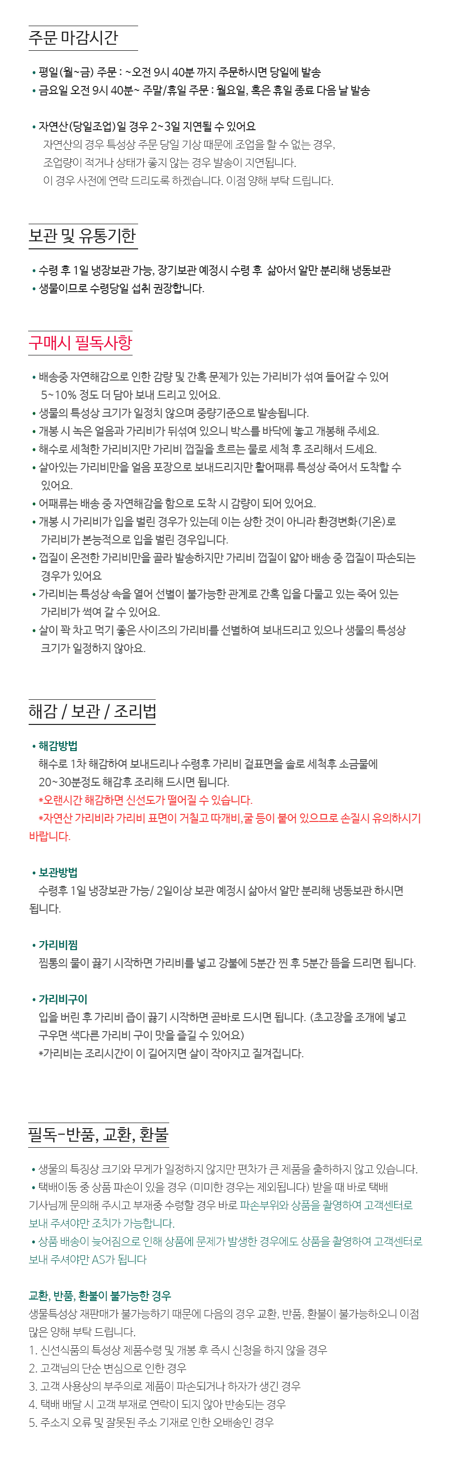 1. 신선식품의 특성상 제품수령 후 10시간 이내 신청을 하지 않을 경우