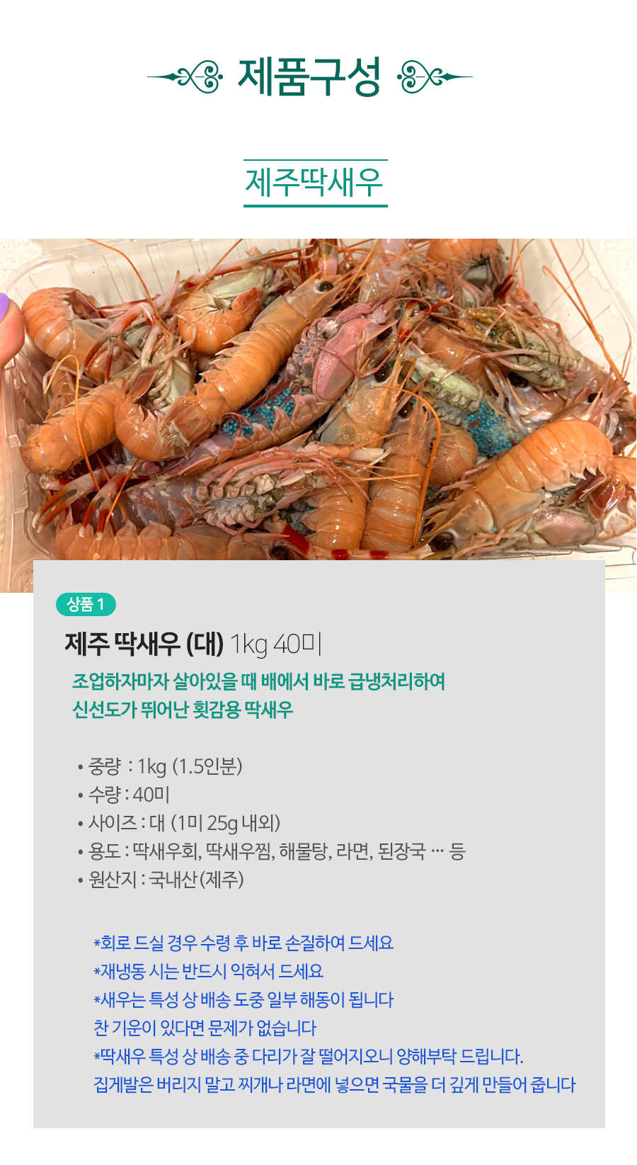 | 상품구성 | 딱새우 1kg 40미 내외 급냉 |