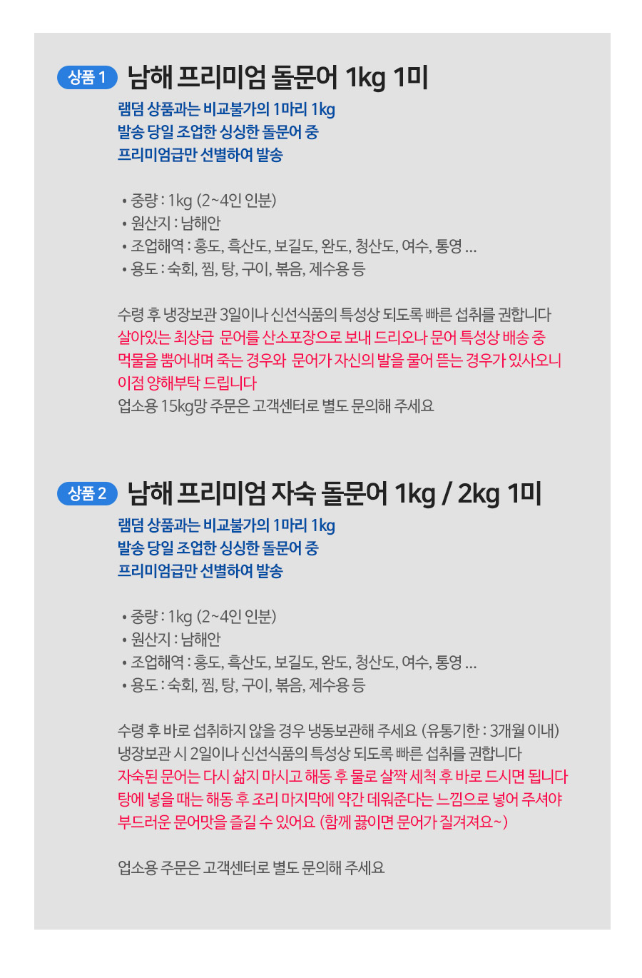 | 상품구성 | 돌문어 1미 1kg, 2kg |