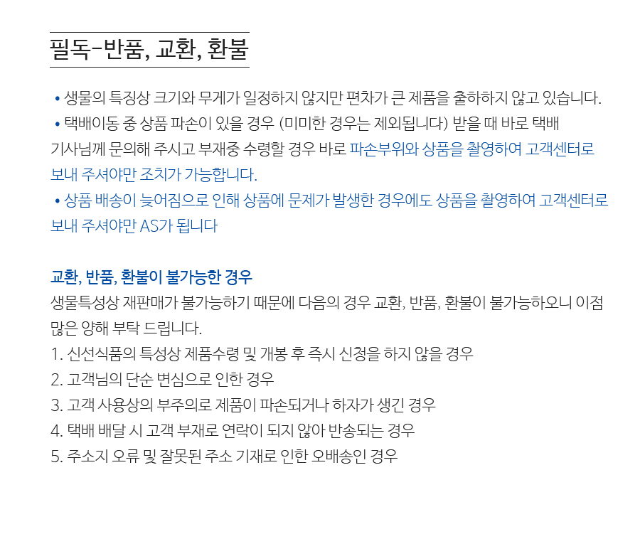 생물특성상 재판매가 불가능하기 때문에 다음의 경우 교환, 반품, 환불이 불가능하오니 이점 많은 양해 부탁 드립니다.