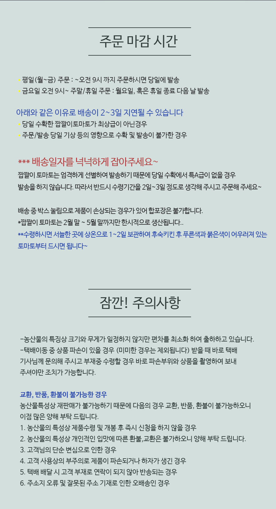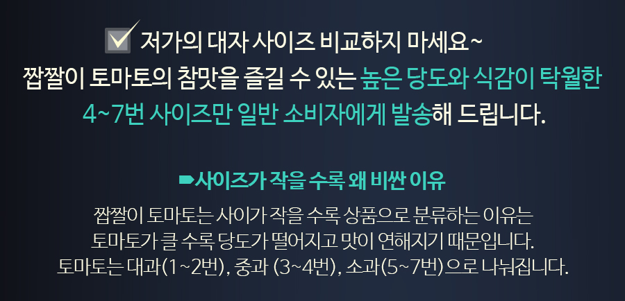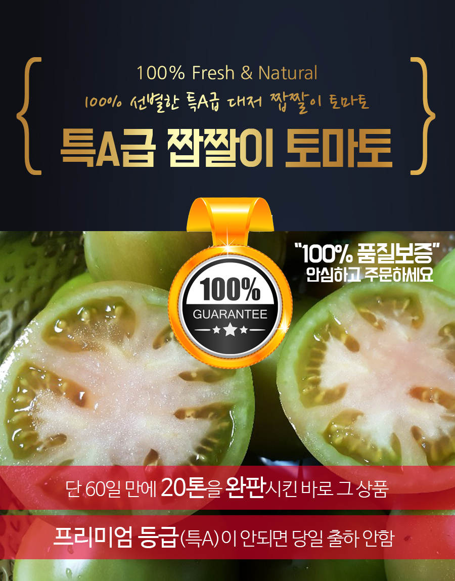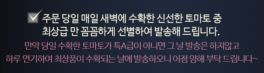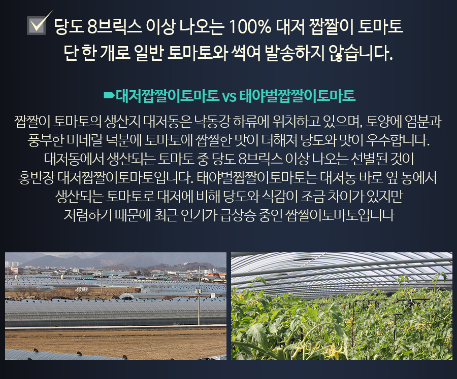 | 상품구성 | 태야벌 최상급 짭짤이토마토 4~7번과 2.5kg, 대저 프리미엄 짭짤이토마토 4~7번과 2.5kg |